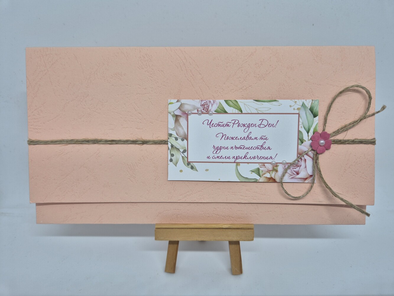 Ръчно изработен плик за подарък.